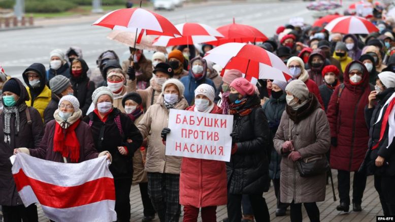 každou chvíli je slyšet (zejména z oficiálních běloruských médií), že protesty už v podstatě skončily. Podle Lukašenka už tuto neděli žádné „nepokoje“ nebyly. Naštěstí dnes máme internet a mobily a nemusíme věřit propagandě :-) Nedělní fotky jste viděli. V pondělí vyšli do ulic měst zase úžasní neohrožení důchodci – na svůj 8. pochod. V Minsku se je tentokrát nepodařilo zastavit jako před týdnem a několik tisíc lidí prošlo svou plánovanou trasu.