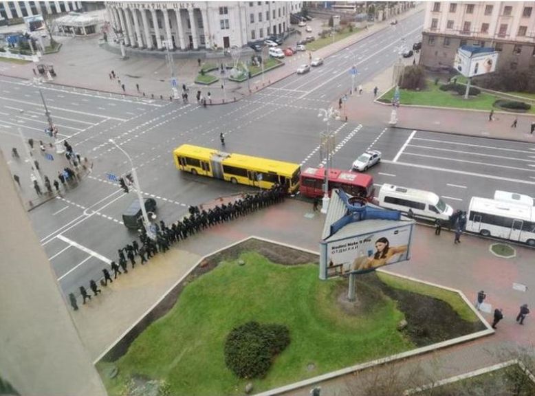 Přesto ale „ti černí“ bděli. Na fotkách můžete vidět, jak přehradili ulici, aby staří lidé nemohli jít dál. Autobusy, dodávky a „náklaďáky“ (antony), které stojí podél silnic, jsou jejich – těmi sami cestují a těmi odvážejí zadržené lidi.